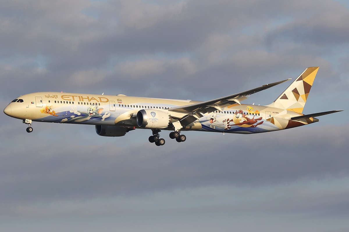 Etihad Airways stak een van haar Boeing 787-10s in een speciaal Warner Bros jasje. Aan de linkerzijde prijken Tom & Jerry, Bugs Bunny, Tazmanian Devil & Tweety op de romp. De andere kant is voorbehouden aan de Marvel helden Superman, Wonder Woman en Batman. De jacht op de rechterkant is nog open.