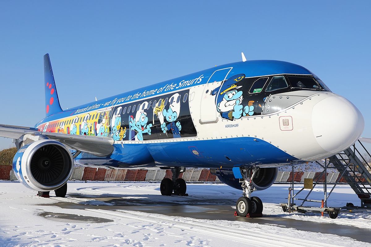 Brussels Airlines tooide de A320-214 OO-TCV met de ‘Yes to Europe!’ titels.