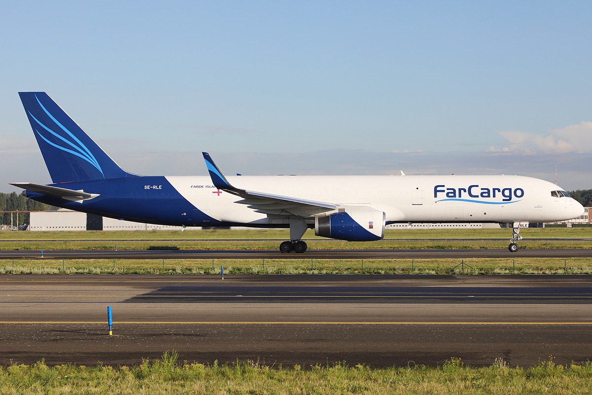 Verse zalm uit de Faeröer eilanden wordt aangevoerd aan boord van deze Boeing 757-223(PCF) van FarCargo, die geleased wordt van West Atlantic Sweden.