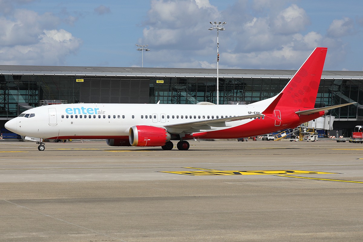 Tijdens de spotterdag op Brussels Airport werden de spotters getrakteerd op deze Enter Air Boeing 737-8 MAX SP-EXH. De kleuren van de vorige eigenaar SpiceJet zijn nog duidelijk zichtbaar.