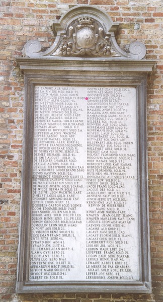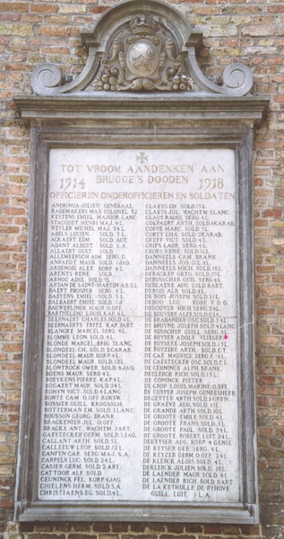 In de Karthuizerinnenstraat te Brugge werden aan de buitenmuur van de Militaire Kapel (de voormalige kapel van het oude Karthuizerinnenklooster) gedenkplaten aangebracht ter herinnering aan de militaire en burgerlijke slachtoffers van 1914-1918 en 1940-1945. Op drie van deze platen werden drie namen vermeld van militairen die tijdens de Eerste Wereldoorlog in dienst waren bij de Belgische Militaire Luchtvaart.