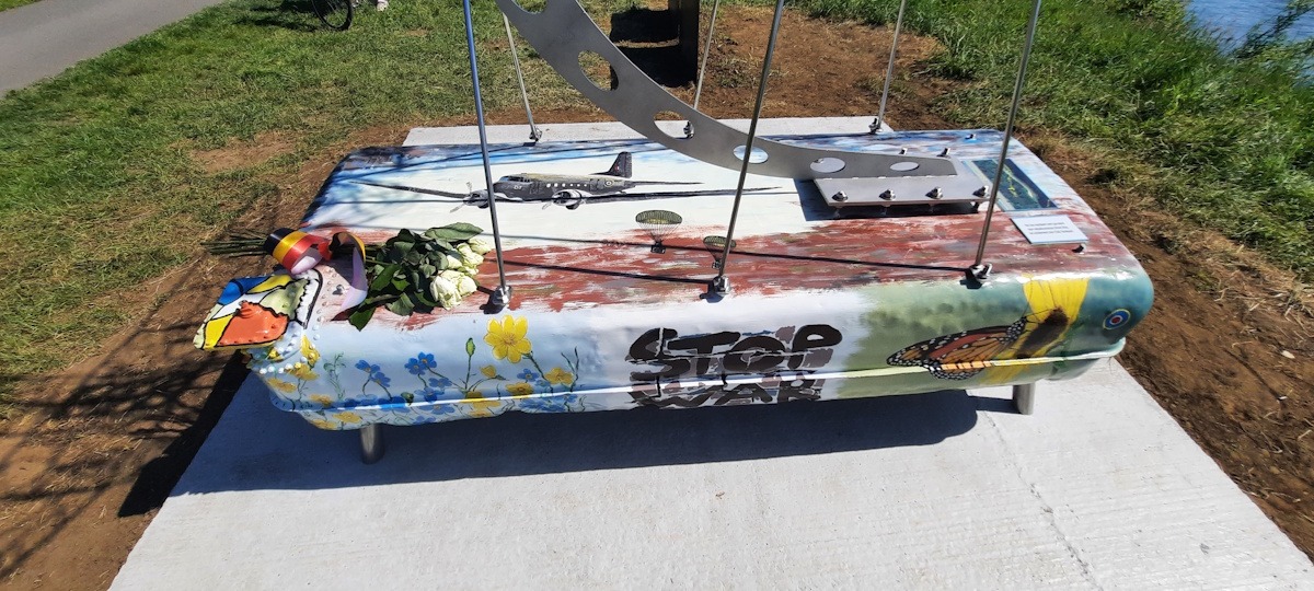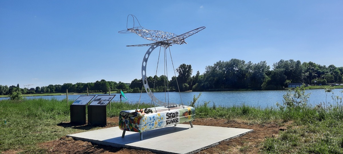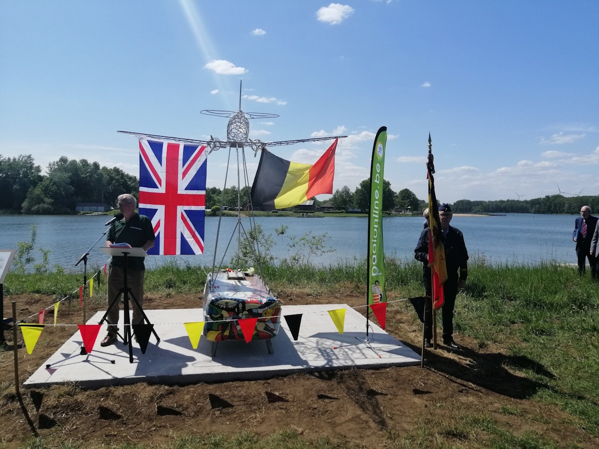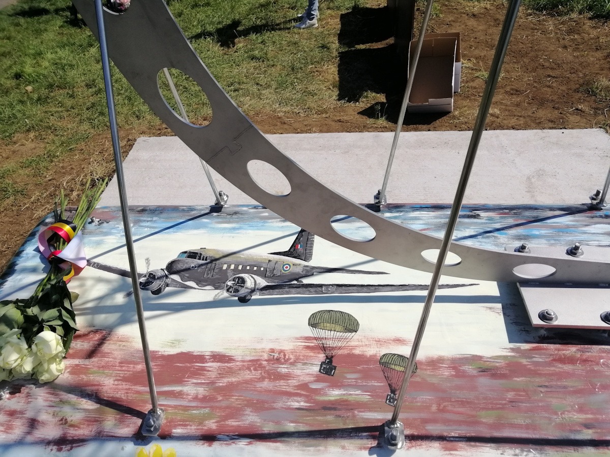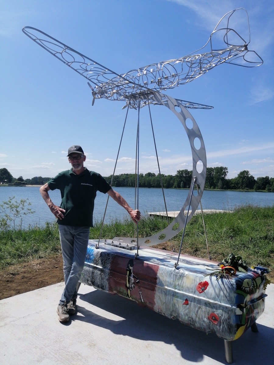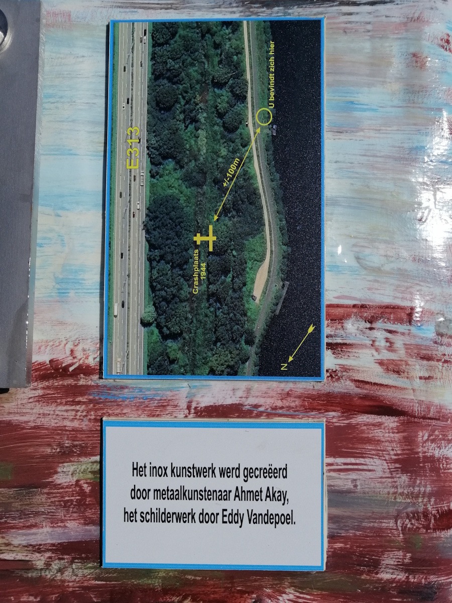 Het inox monument werd ontworpen door metaalkunstenaar Ahmet Akay en is deskundig beschilderd door Eddy Vandepoel van Focus History (http://www.focushistory.be/). Het project kreeg de steun van de provincie en het stadsbestuur. Er was heel wat belangstelling voor dit initiatief en Eddy Vandepoel en zijn team zijn er zeker in geslaagd om de verhalen van hun grootouders niet te laten verloren gaan. Leerlingen van het Spectrumcollege Campus Paal hielpen met de publicatie van een brochure over de noodlanding. Ze hebben ook hun steentje bijgedragen bij de inhuldiging.